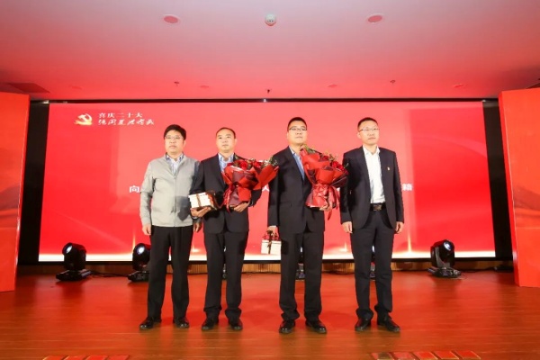 區(qū)黨政辦主任孫華,鹽城東方集團(tuán)黨委書記、董事長、總經(jīng)理王旭東向一、二季度開發(fā)區(qū)好人張輝、孫龍贈送書籍,希望他們充分發(fā)揮榜樣作用,持續(xù)傳播真善美、傳遞正能量。