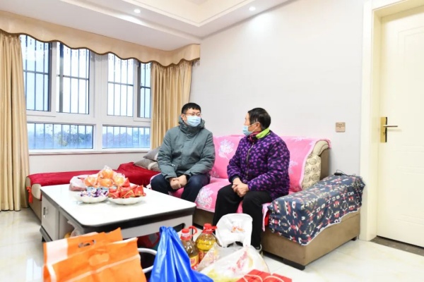在東方園林公司蔡正秀家中,吳將與其親切交流,話家常、聽心聲,詳細了解了她的家庭生活狀況,并囑咐她要保重身體,照顧好兩個孫子,保持樂觀向上心態(tài),祝福她和家人在新的一年里身體健康、萬事順意。