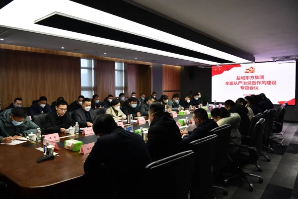 1月19日上午,為貫徹落實全區(qū)機關作風建設大會精神,鹽城東方集團召開全面從嚴治黨暨作風建設專題會議,集團黨委書記、董事長、總經(jīng)理王旭東主持會議并講話。集團領導班子成員,集團各部門、子公司負責人參加會議。