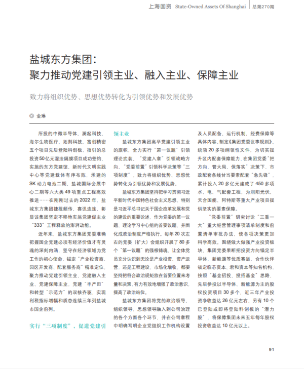 《上海國資》刊文推介丨鹽城東方集團(tuán):黨建促主業(yè)“333”工程釋放澎湃動能