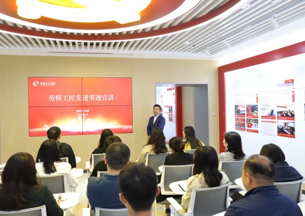 活動現(xiàn)場,2022年鹽城市五一勞動獎?wù)芦@得者、東投房地產(chǎn)公司總經(jīng)理王雷以《踔厲奮發(fā) 篤行不怠》為題,圍繞黨的二十大精神,習(xí)近平總書記關(guān)于勞模精神、勞動精神、工匠精神的重要論述等內(nèi)容,結(jié)合自身崗位工作,將自己匠心筑夢的奮斗故事娓娓道來。他用樸實的語言、生動的事例,號召全體職工樹立求知善讀、終身學(xué)習(xí)的理念,在閱讀中思考振興良策,凝聚發(fā)展智慧,努力把讀書的收獲轉(zhuǎn)化為推動集團(tuán)高質(zhì)量發(fā)展的思想動力和生動實踐。