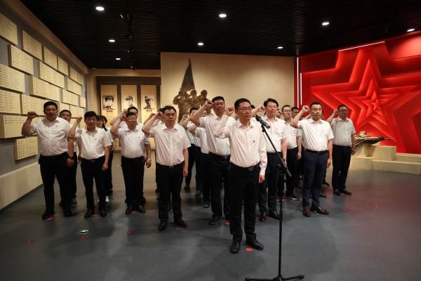 在傳承廳,面對(duì)著鮮紅的中國共產(chǎn)黨黨旗,在王旭東同志的帶領(lǐng)下,參加活動(dòng)的全體黨員莊嚴(yán)舉起右拳,重溫入黨誓詞。“我志愿加入中國共產(chǎn)黨,擁護(hù)黨的綱領(lǐng),遵守黨的章程……”鏗鏘有力的誓詞響徹大廳,一字一句,神圣而豪邁,錚錚誓言,彰顯著黨員同志們?yōu)辄h的事業(yè)奮斗終身的堅(jiān)定決心。