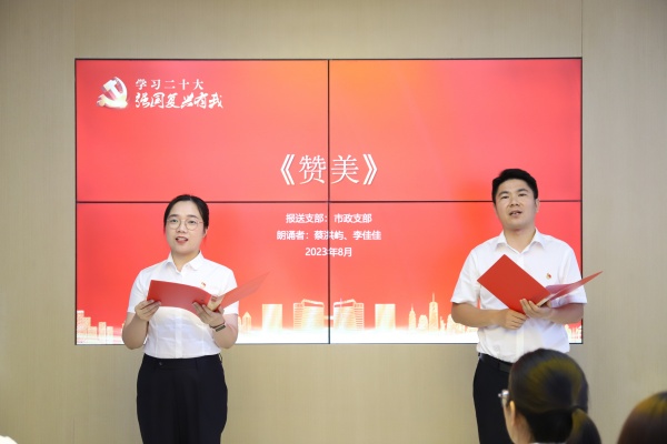 活動現(xiàn)場,代表鹽城經(jīng)開區(qū)參加全市“貫徹二十大 奮進新征程”主題宣講比賽并榮獲“二等獎”的集團青年宣講組合周毅、張勇為大家?guī)砹酥黝}宣講《致敬新時代、奮進新征程》,宣講聲情并茂、深入人心,讓大家在誦讀聲中感受新時代的脈搏,在傾聽中辨別新征程的方向,著力激發(fā)青年員工在奮力推進中國式現(xiàn)代化新征程上的使命任務(wù)與責(zé)任擔(dān)當(dāng)!