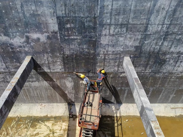 在鹽城經(jīng)濟(jì)技術(shù)開發(fā)區(qū)第三污水處理廠項(xiàng)目,潮濕悶熱的地下8米深處,36名工人分散在各污水處理池進(jìn)行池體防腐施工。為了防止曬傷,工人們?cè)谘谉岬南奶煲琅f穿著長袖長褲,全身被汗水濕透。