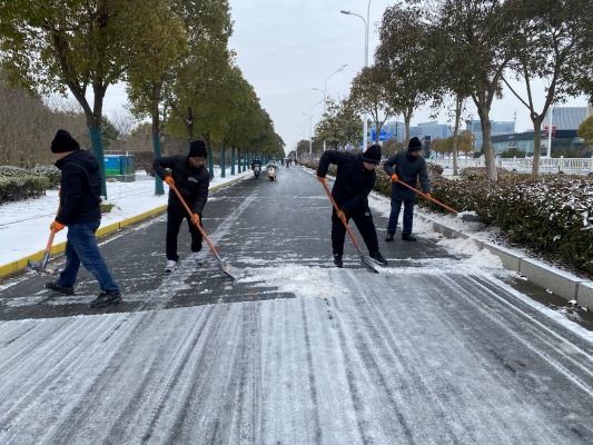 東方物業(yè)公司嚴(yán)格落實(shí)24小時(shí)值班值守制度,從昨晚開(kāi)始,組織100余人對(duì)園區(qū)、廠區(qū)、住宅小區(qū)以及其他在管資產(chǎn)進(jìn)行全面掃雪除冰工作。23日早上,物業(yè)公司抽調(diào)精干力量80余人組成掃雪除冰隊(duì)伍,在公司負(fù)責(zé)人的帶領(lǐng)下,對(duì)未來(lái)科技城東、西區(qū)及周邊主干道、人行道等重點(diǎn)部位進(jìn)行破冰鏟雪以及撒鹽防凍。