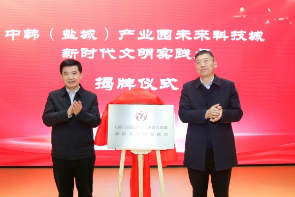 3月4日,“中韓(鹽城)產(chǎn)業(yè)園未來科技城新時代文明實踐點”揭牌儀式在鹽城經(jīng)開區(qū)1992人才會客廳舉行。鹽城市委宣傳部副部長、市文明辦主任張孝榮,鹽城經(jīng)開區(qū)管委會黨工委委員、副主任趙華出席儀式并揭牌。鹽城東方集團黨委書記、董事長、總經(jīng)理王旭東致辭。