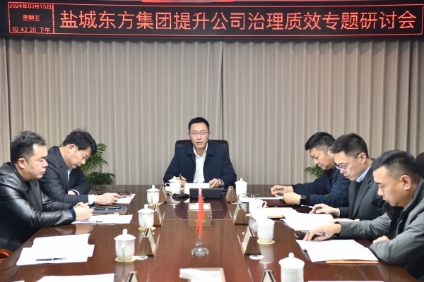 3月15日下午,鹽城東方集團(tuán)黨委書記、董事長(zhǎng)、總經(jīng)理王旭東在集團(tuán)1121會(huì)議室主持召開提升公司治理質(zhì)效專題研討會(huì),要求深入推進(jìn)新一輪國(guó)有企業(yè)改革,加強(qiáng)黨的全面領(lǐng)導(dǎo),持續(xù)提升治理效能,全面增強(qiáng)企業(yè)核心競(jìng)爭(zhēng)力。
