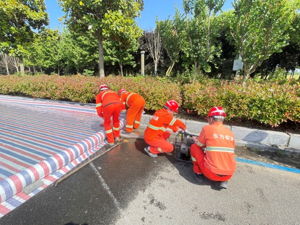 “報告!接到氣象局發(fā)布暴雨‘橙色預(yù)警’,新都路九華山路東側(cè)路段有被雨水浸淹危險!”日前,東方安通公司組織的一場防汛應(yīng)急演練拉開帷幕。現(xiàn)場工程組、搶險組、疏散組、保障組、清掃組反應(yīng)迅速、配合默契,有效強化了各行動組防汛危機意識,既檢驗了防汛應(yīng)急搶險救援能力,又增強了災(zāi)害風險防范意識,為安全度汛奠定堅實基礎(chǔ)。