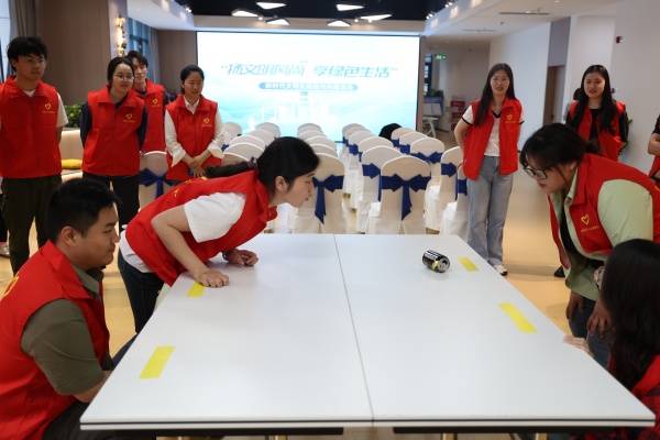 為增加活動的趣味性、互動性,現(xiàn)場還舉辦了兩場環(huán)保主題小游戲——“環(huán)保易拉罐大作戰(zhàn)”“垃圾分類大作戰(zhàn)”。志愿者們通過趣味游戲?qū)W習(xí)、踐行環(huán)保知識,強(qiáng)化了綠色環(huán)保理念。