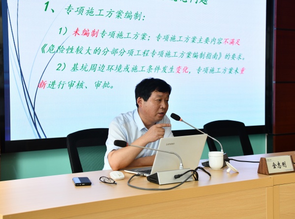 根據(jù)“安全生產(chǎn)月”活動(dòng)安排,6月25日下午,集團(tuán)邀請鹽城市工程建設(shè)監(jiān)理中心有限公司副總經(jīng)理、研究員級(jí)高級(jí)工程師金志剛就深基坑及建筑施工消防為工程條線全體人員授課,集團(tuán)黨委委員、副總經(jīng)理王成林主持會(huì)議。
