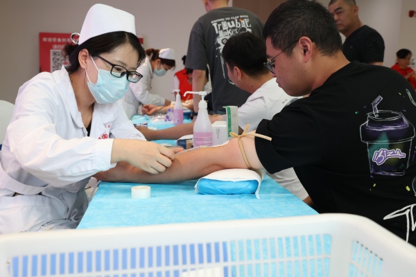 “今年一收到活動通知,我立刻組織了團委的青年志愿者們主動報名,鼓勵用自己的愛心和血液,為社會奉獻一份力量!”集團團委書記何適說。一旁來自東方安通公司的蔡炳桂說:“我今年57歲了,之前一共獻了1100毫升,只要我的身體還符合獻血標準,我就會一直堅持獻到60歲!”