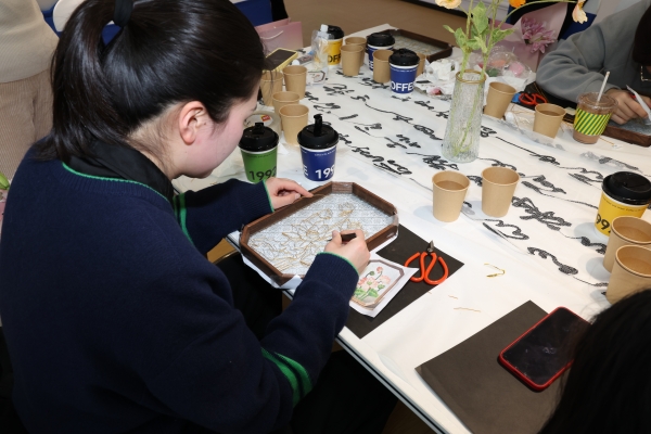 在擁有豐富經驗的老師的協(xié)助下,女職工們執(zhí)絲為筆、以彩為釉,一邊小心翼翼地描摹輪廓,一邊認真地用釉料著色。經過長達3小時的制作,看似普通的金絲幾經彎折和顏色填充,最終繪制成一幅幅精美的圖案。嬌艷動人的荷花、素潔清逸的蘭花、淡雅脫俗的杏花躍然于玻璃底板之上……大家在制作過程中交流心得,歡聲笑語不斷,每一個作品都承載著同事間的深厚情誼。通過此次活動,不僅讓大家學習了掐絲琺瑯畫的制作技藝,更感受到了傳統(tǒng)文化的獨特魅力,增強了文化自信。