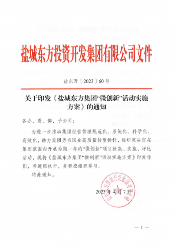 去年初,鹽城東方集團(tuán)通過開展“微創(chuàng)新”活動,鼓勵集團(tuán)全員立足本職崗位、堅持問題導(dǎo)向,從小建議、小創(chuàng)造、小革新等“小切口”入手,助力提高運(yùn)營效率、完善管理流程、提升經(jīng)營業(yè)績。